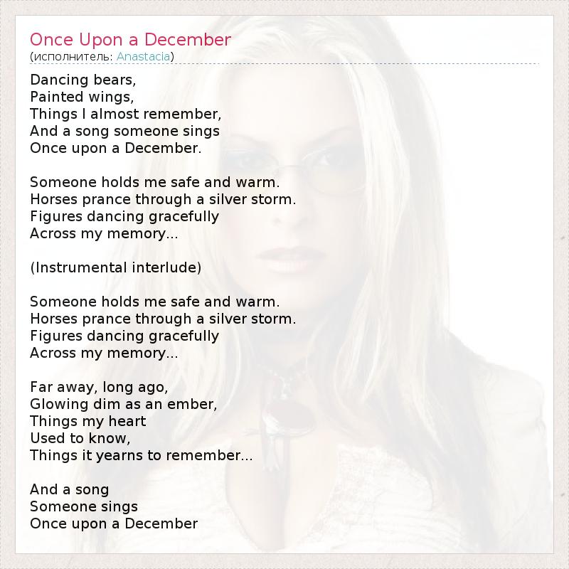А как ты думаешь, о чем песня "Once Upon a December" ?