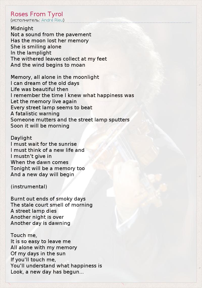 А как ты думаешь, о чем песня "Roses From Tyrol" ?
