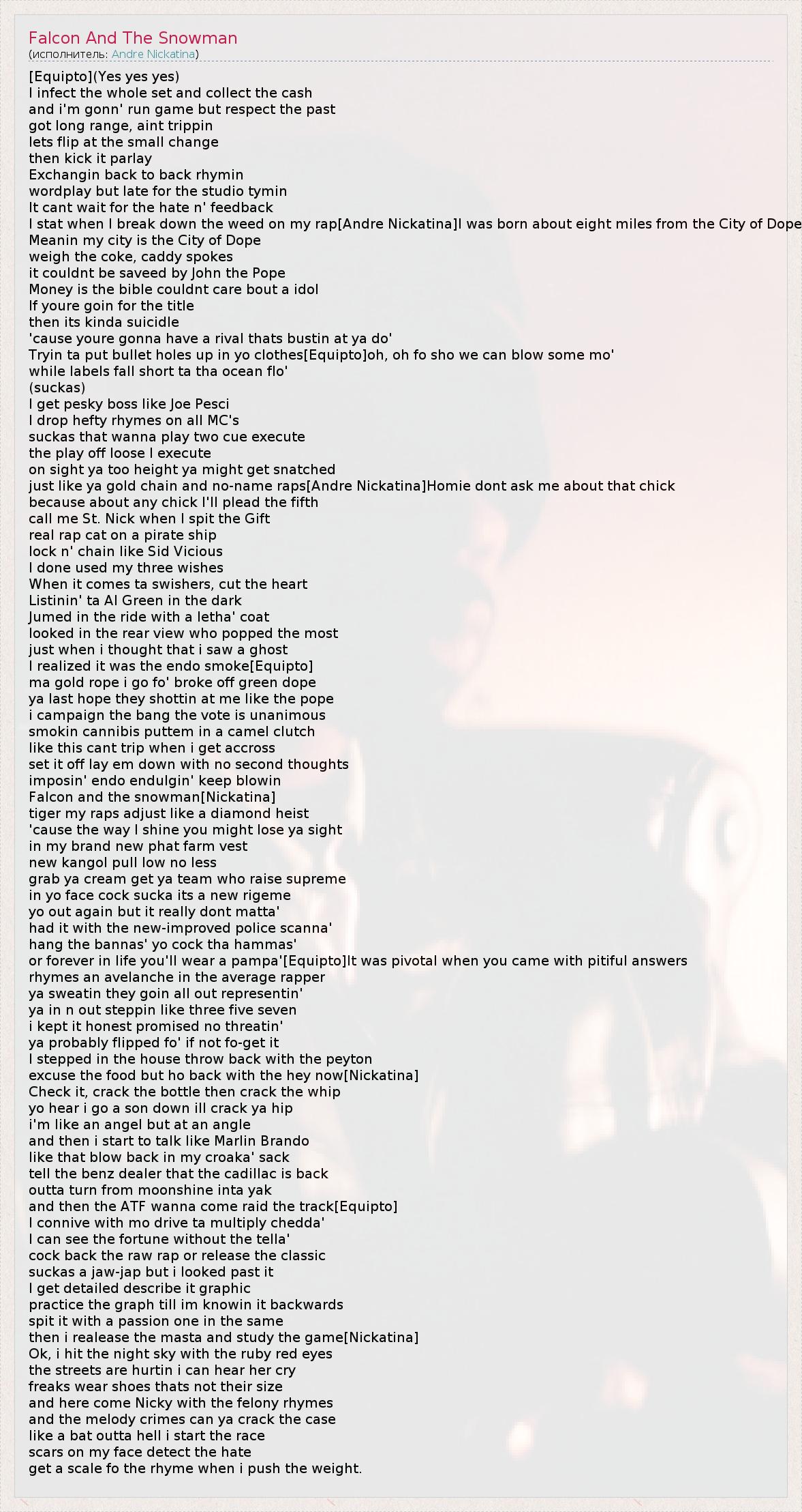 А как ты думаешь, о чем песня "Falcon And The Snowman" ?