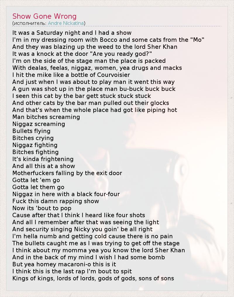 А как ты думаешь, о чем песня "Show Gone Wrong" ?
