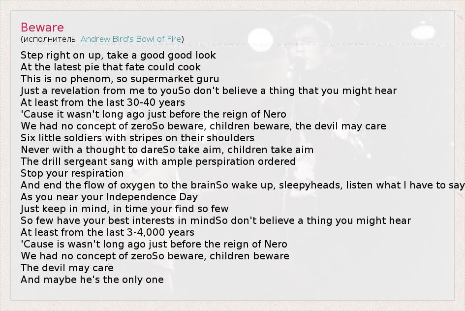 А как ты думаешь, о чем песня "Beware" ?