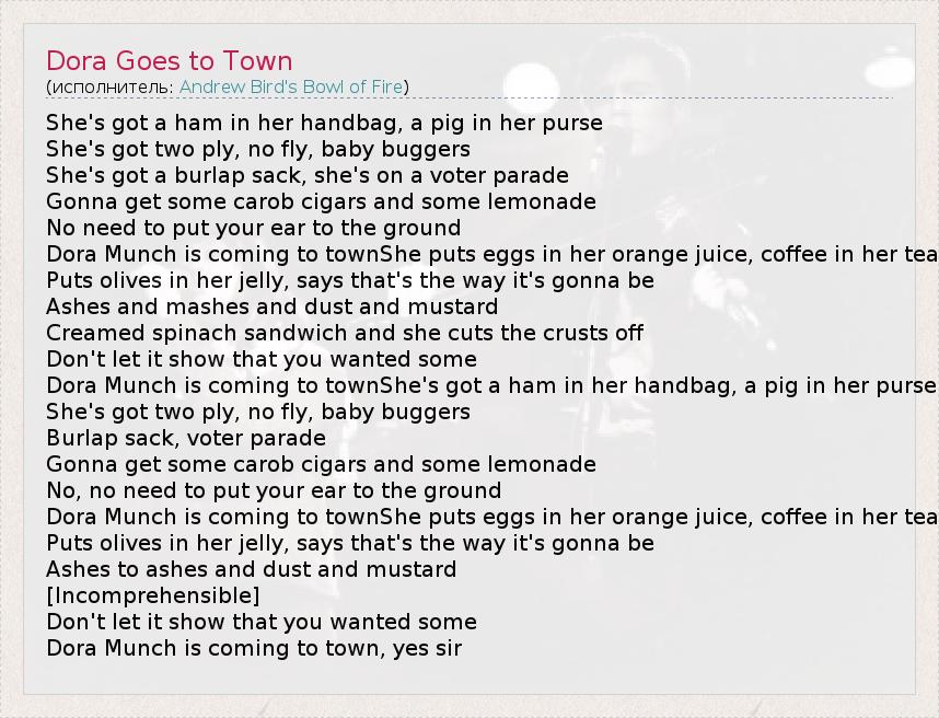 А как ты думаешь, о чем песня "Dora Goes to Town" ?