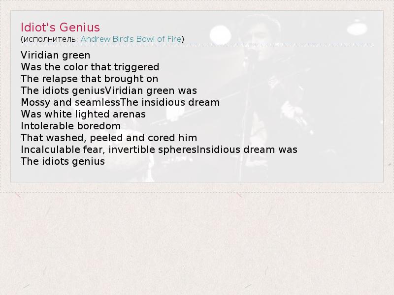 А как ты думаешь, о чем песня "Idiot's Genius" ?