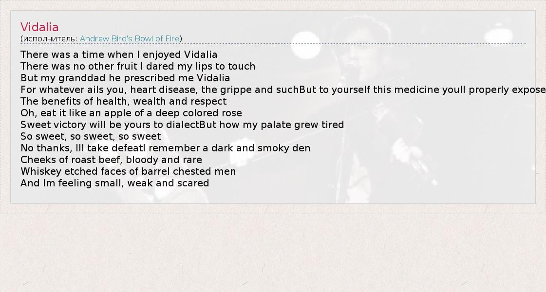 А как ты думаешь, о чем песня "Vidalia" ?