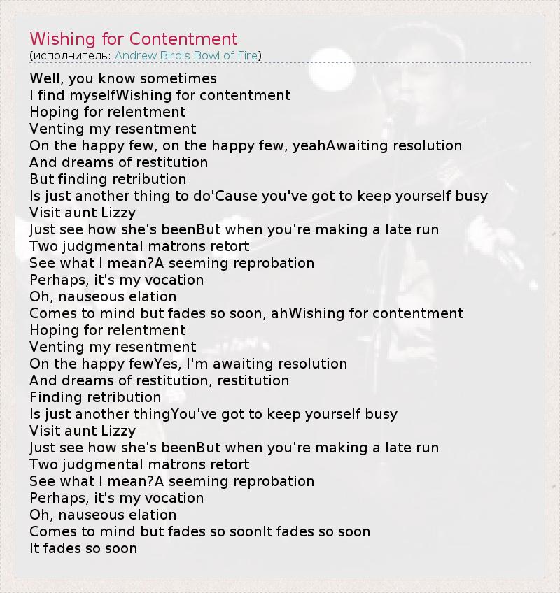 А как ты думаешь, о чем песня "Wishing for Contentment" ?