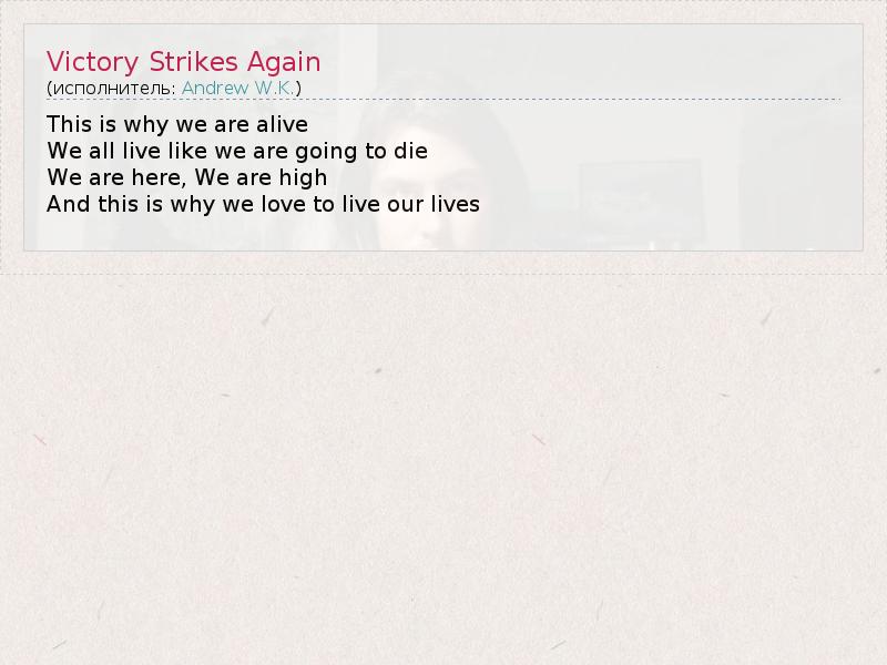 А как ты думаешь, о чем песня "Victory Strikes Again" ?