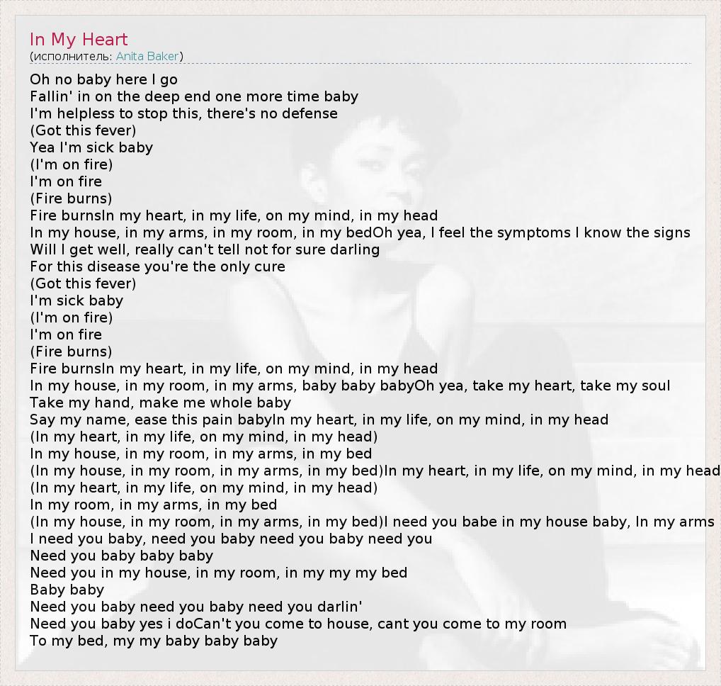 In my house, in my room, in my arms, baby baby babyOh yea, take my heart, take my soul