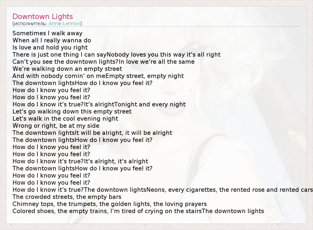 А как ты думаешь, о чем песня "Downtown Lights" ?