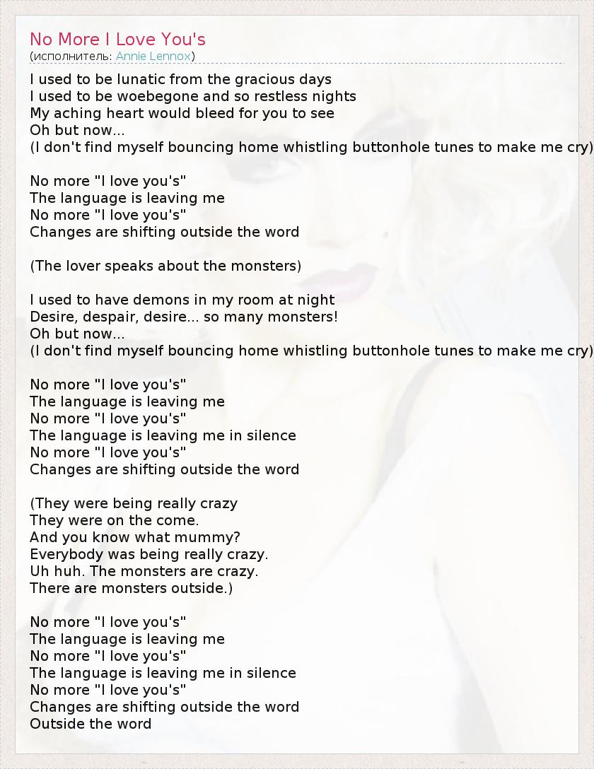 А как ты думаешь, о чем песня "No More I Love You's" ?