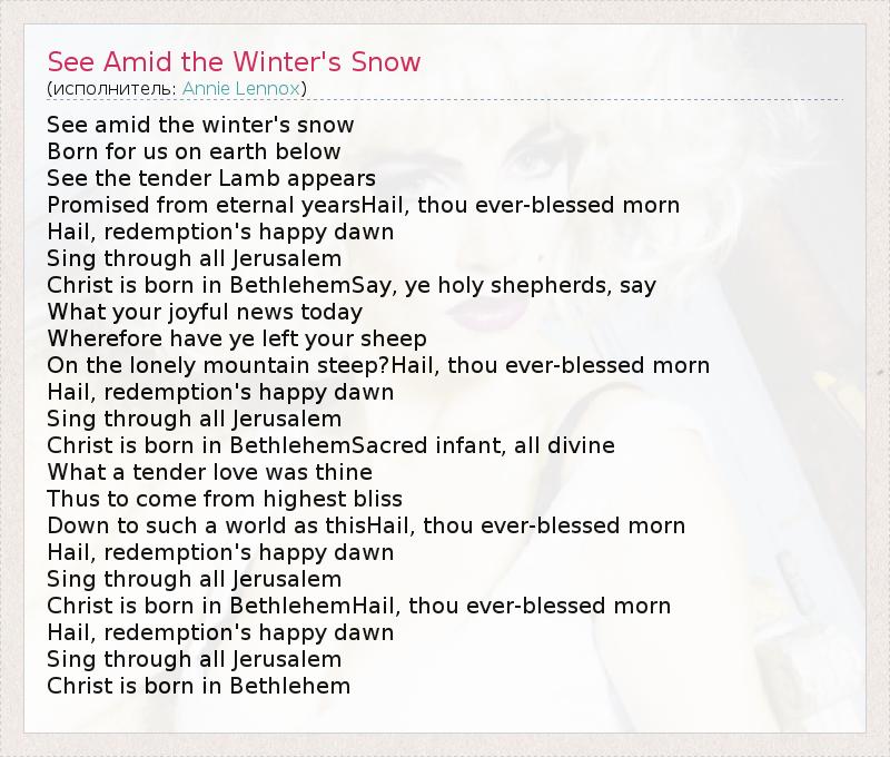 ГлавнаяИсполнителиAnnie LennoxSee Amid the Winter's Snow