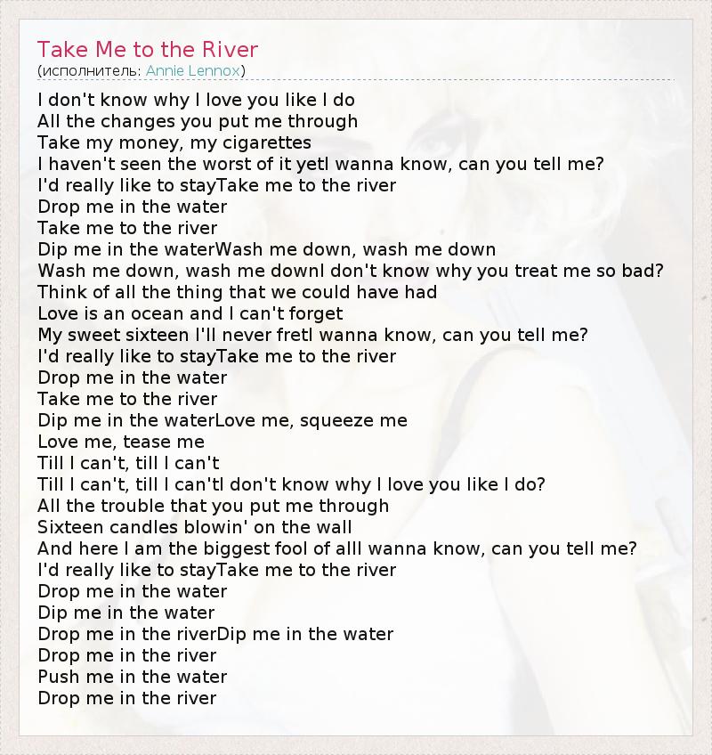 А как ты думаешь, о чем песня "Take Me to the River" ?