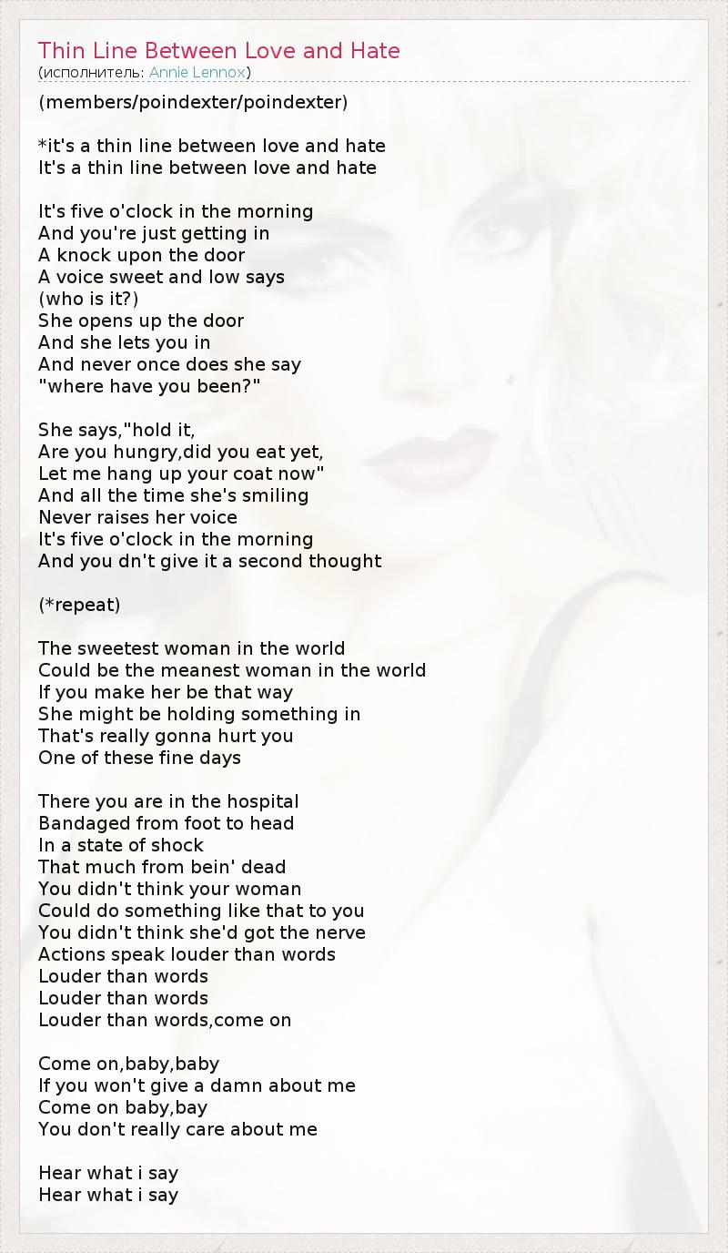 А как ты думаешь, о чем песня "Thin Line Between Love and Hate" ?