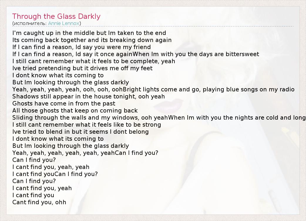 А как ты думаешь, о чем песня "Through the Glass Darkly" ?