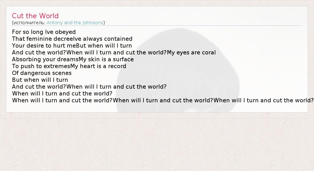 When will I turn and cut the world?When will I turn and cut the world?When will I turn and cut the world?