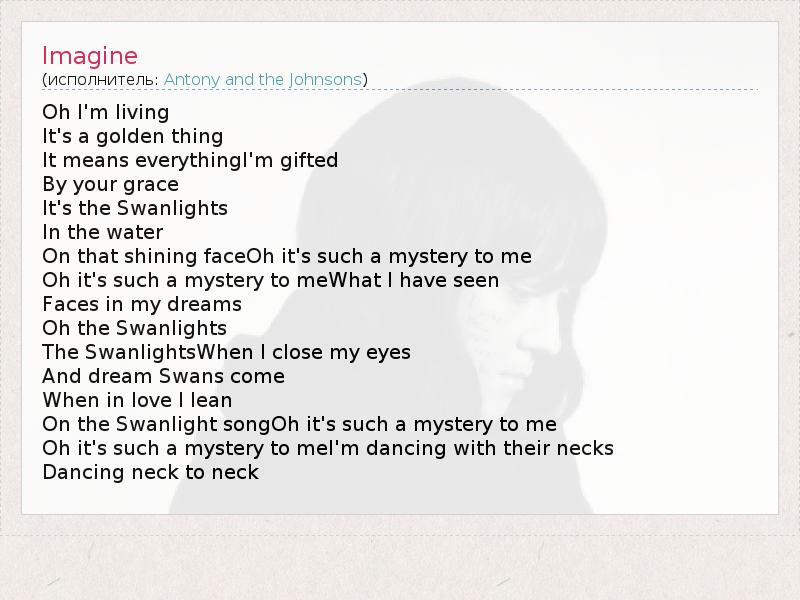 Это интересно:Когда вокалиста сравнивают с Ниной Симон (Nina Simone) и Брайаном Ферри (Bryan Ferry) одновременно, когда среди его горячих поклонников фигурируют такие экстравагантные персонажи, как Бьорк (Björk), Диаманда Галас (Diamanda Galas), Марк Алмонд (Mark Almond), Бой Джордж (Boy George), Лу Рид (Lou Reed) и Руфус Уэйнрайт (Rufus Wainwright),Дэвид Тибет (David Tibet), воображение рисует уникального артиста, наделенного фантастическими возможностями... продолжение