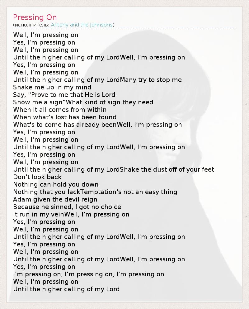 А как ты думаешь, о чем песня "Pressing On" ?