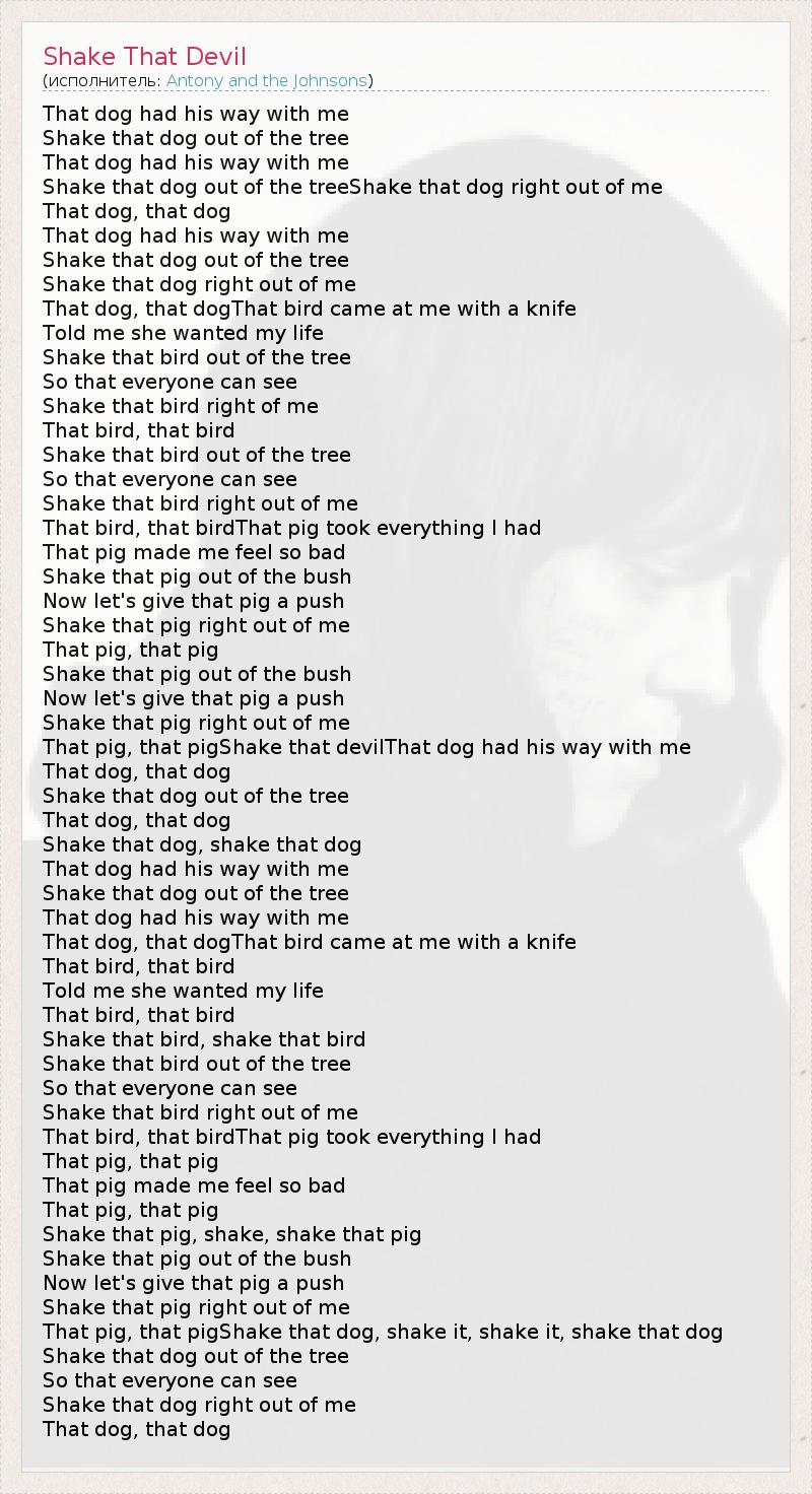 А как ты думаешь, о чем песня "Shake That Devil" ?