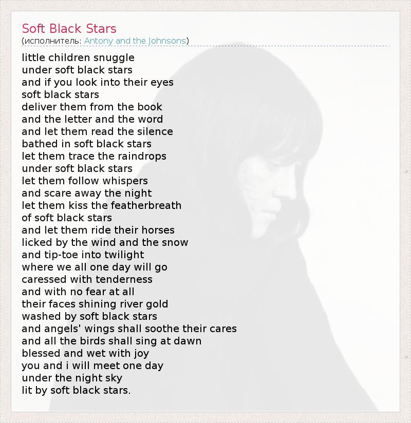 А как ты думаешь, о чем песня "Soft Black Stars" ?