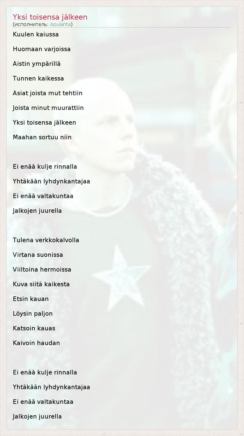 ГлавнаяИсполнителиApulantaYksi toisensa jälkeen