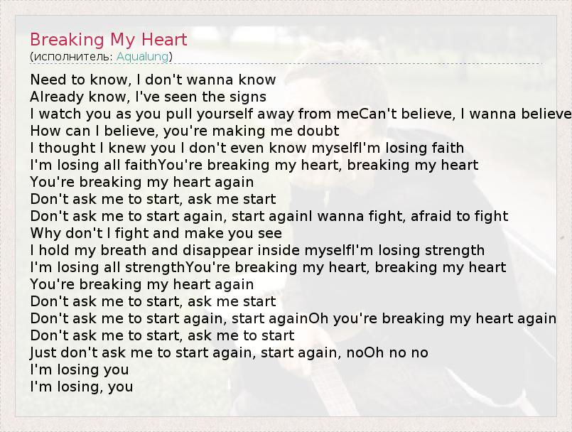 А как ты думаешь, о чем песня "Breaking My Heart" ?