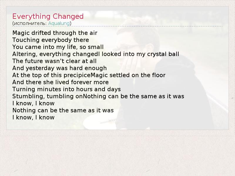 А как ты думаешь, о чем песня "Everything Changed" ?