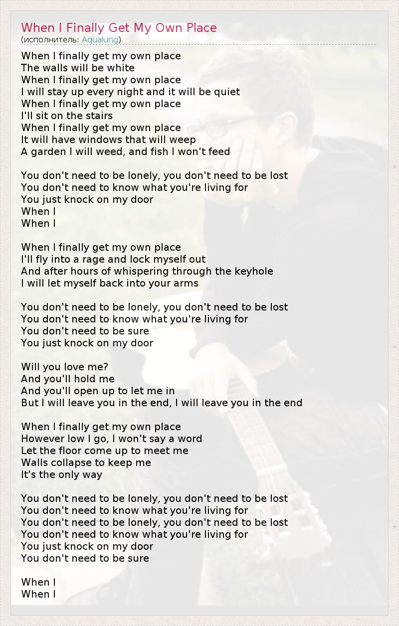 А как ты думаешь, о чем песня "When I Finally Get My Own Place" ?