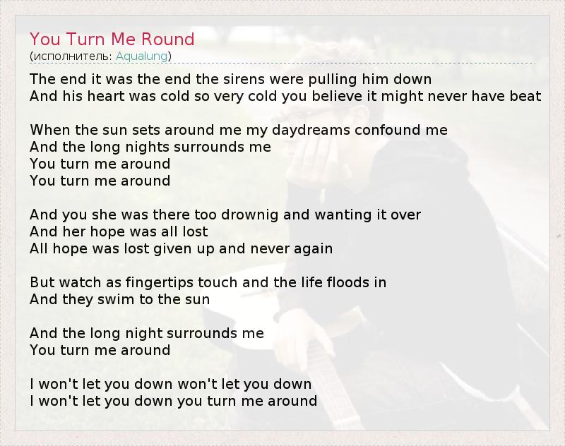 А как ты думаешь, о чем песня "You Turn Me Round" ?