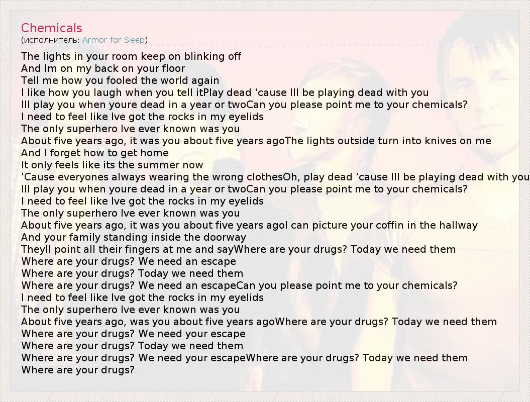 Ill play you when youre dead in a year or twoCan you please point me to your chemicals?