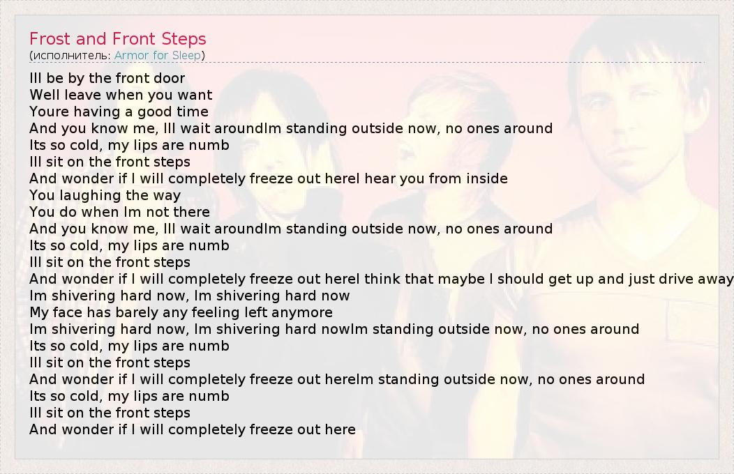 А как ты думаешь, о чем песня "Frost and Front Steps" ?