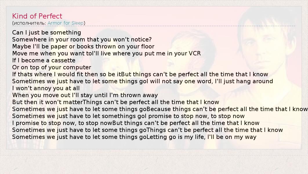 А как ты думаешь, о чем песня "Kind of Perfect" ?