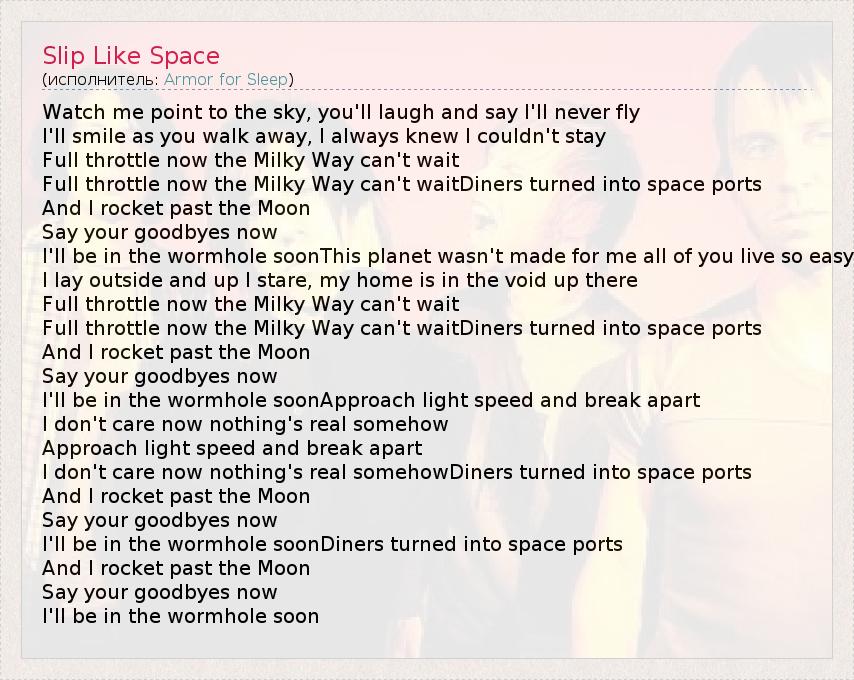 А как ты думаешь, о чем песня "Slip Like Space" ?