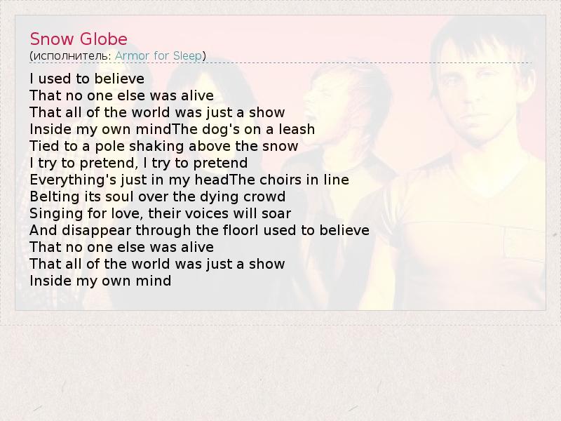 А как ты думаешь, о чем песня "Snow Globe" ?