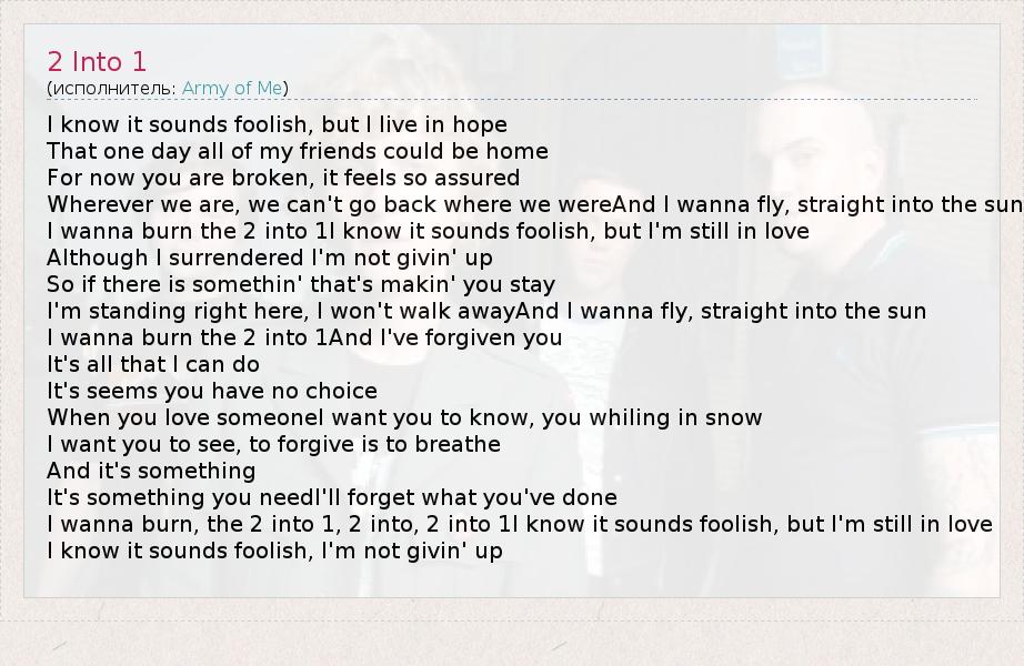 А как ты думаешь, о чем песня "2 Into 1" ?
