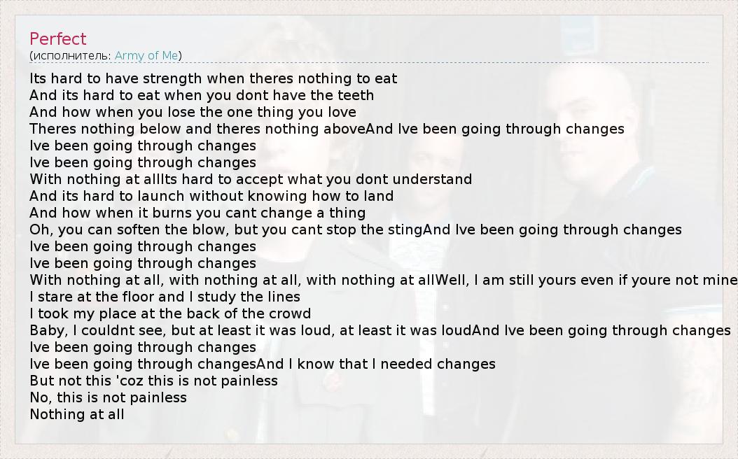 Это интересно:Группа Army of Me родилась в Вашингтоне в 2001 году.Винс Шоерман (Vince Scheuerman) родился в Гайтерсбурге. У его родителей не было больших коллекций музыкальных записей, он вырос в религиозной семье. Но это не помешало ему стать известным на инди-сцене. Он подался в музыку, разочаровавшись во всем остальном. В 17 лет вместе с давним другом Джоном Хатчинсом (John Hutchins) они вступили в ска-коллектив Sidewinders... продолжение