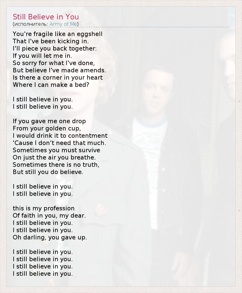 А как ты думаешь, о чем песня "Still Believe in You" ?