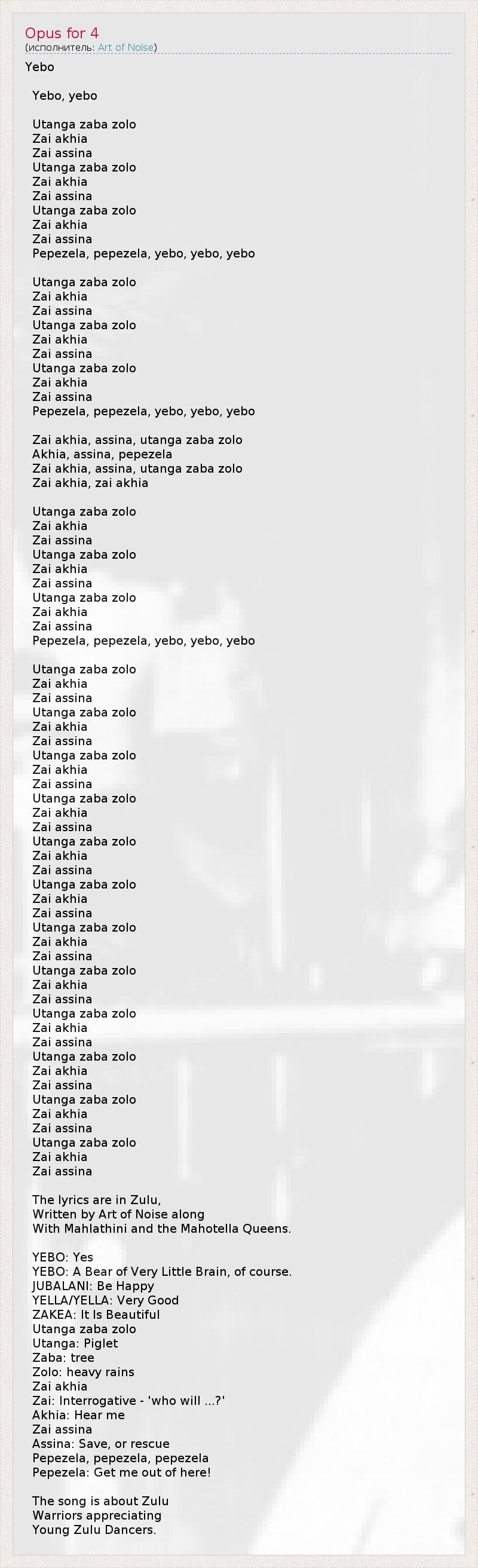 А как ты думаешь, о чем песня "Opus for 4" ?