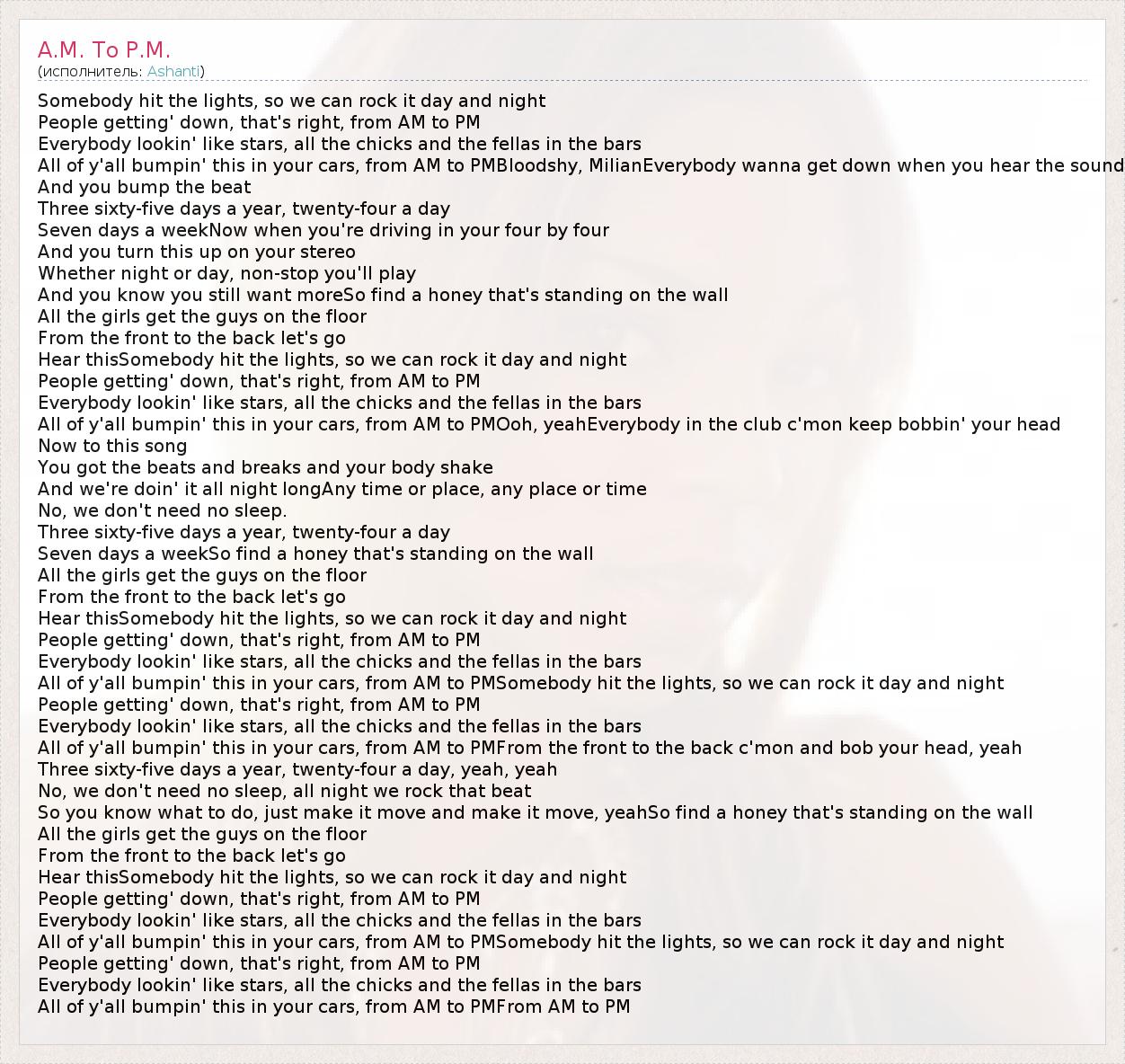 А как ты думаешь, о чем песня "A.M. To P.M." ?