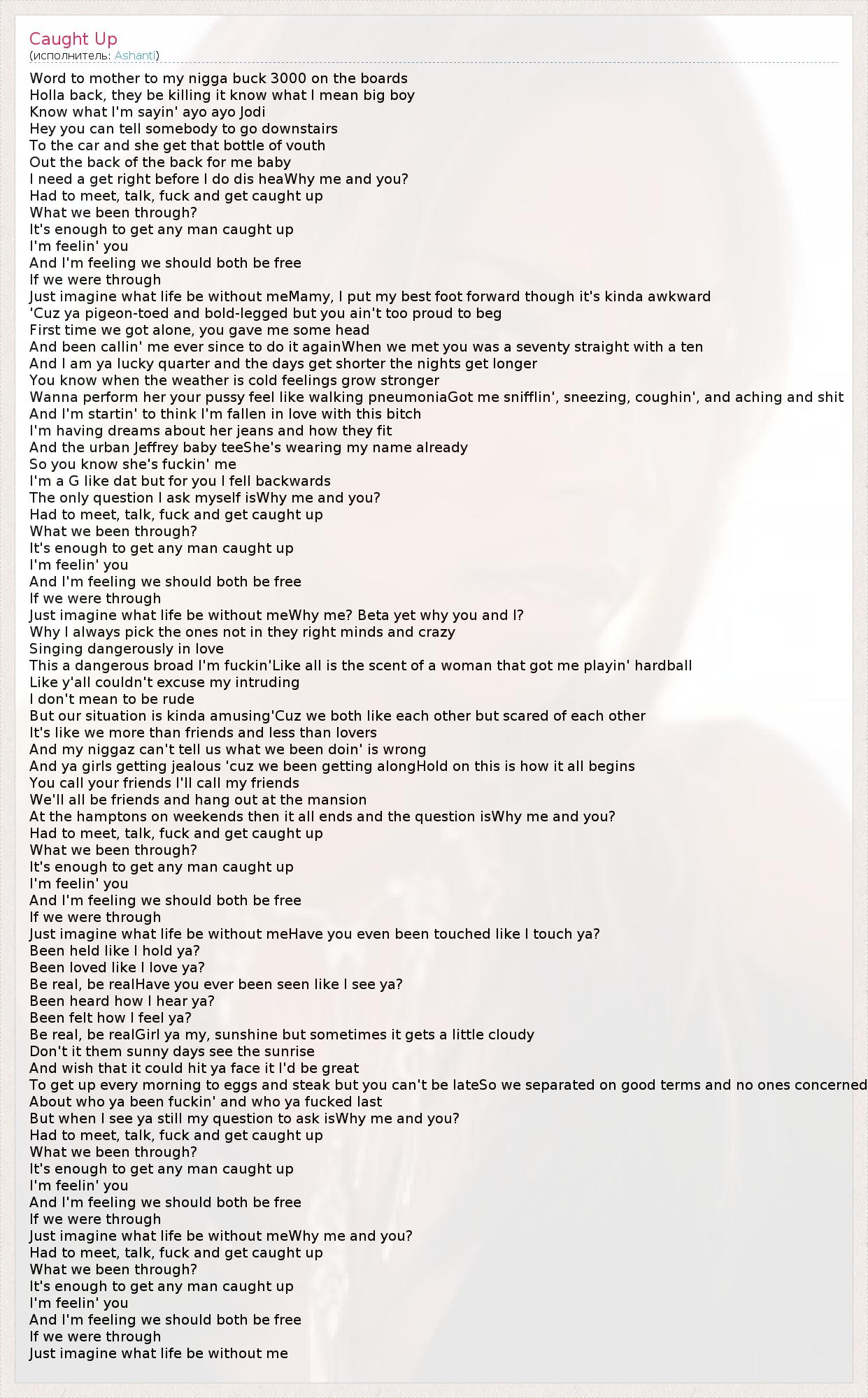 Wanna perform her your pussy feel like walking pneumoniaGot me snifflin', sneezing, coughin', and aching and shit