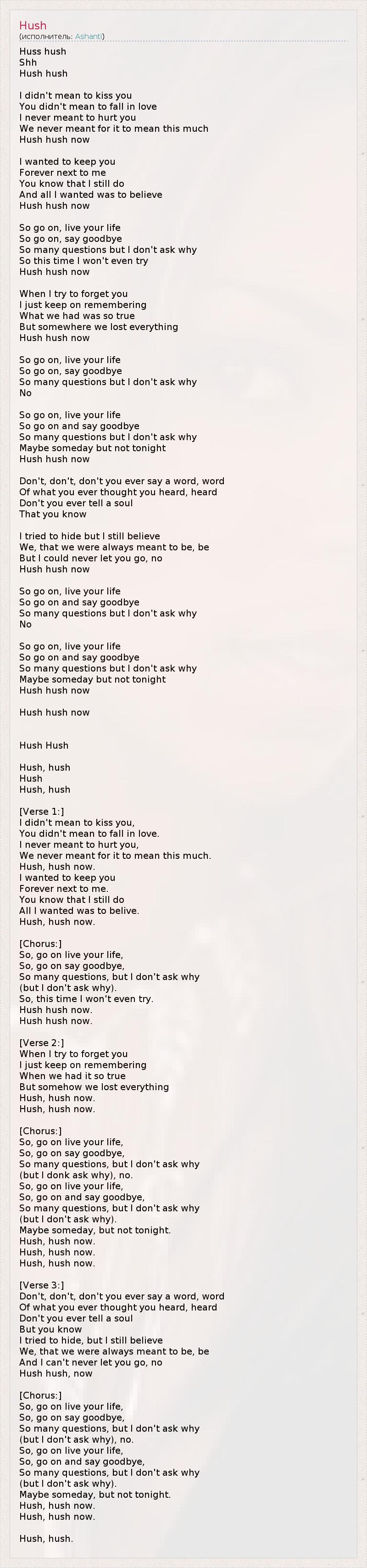 А как ты думаешь, о чем песня "Hush" ?