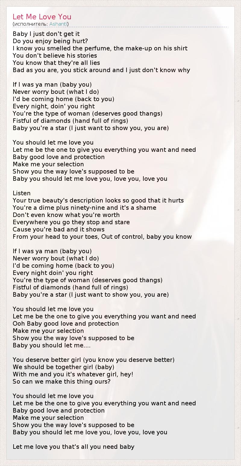 А как ты думаешь, о чем песня "Let Me Love You" ?