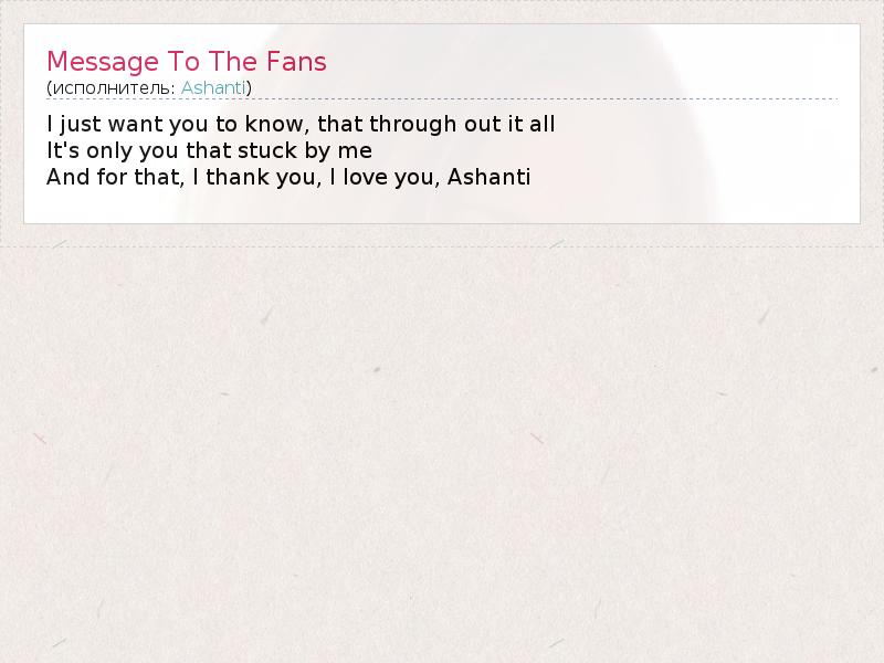 А как ты думаешь, о чем песня "Message To The Fans" ?