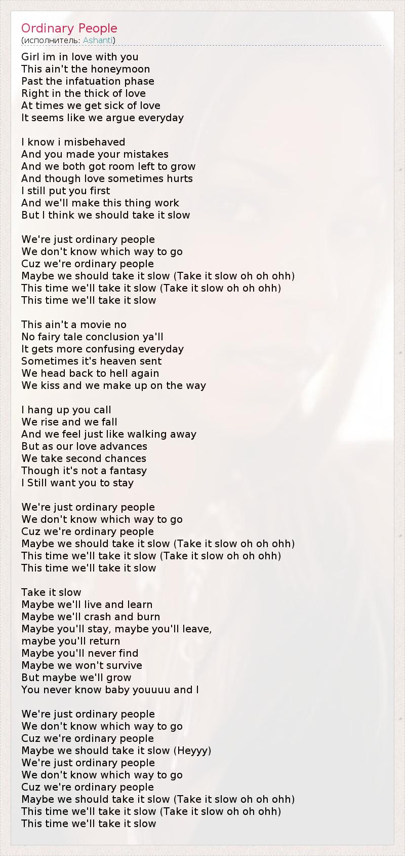 А как ты думаешь, о чем песня "Ordinary People" ?