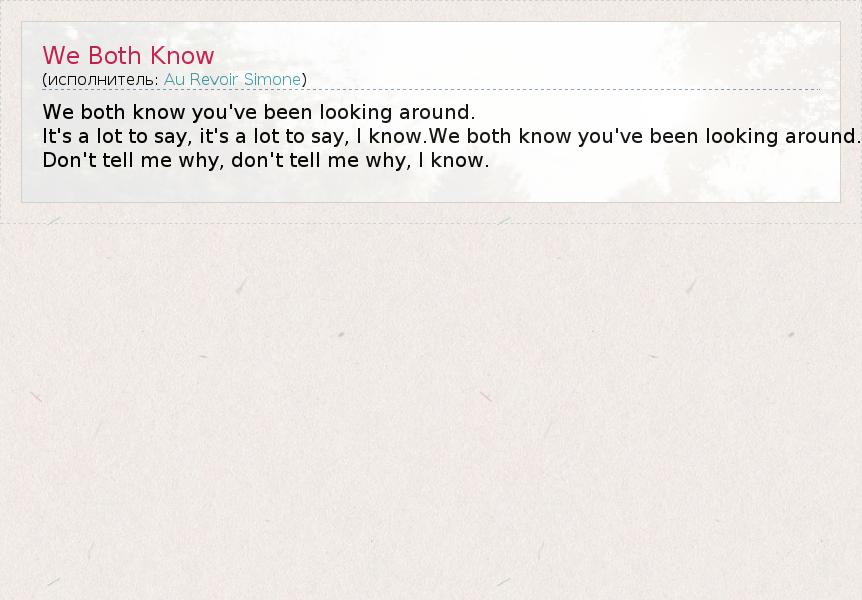 It's a lot to say, it's a lot to say, I know.We both know you've been looking around.