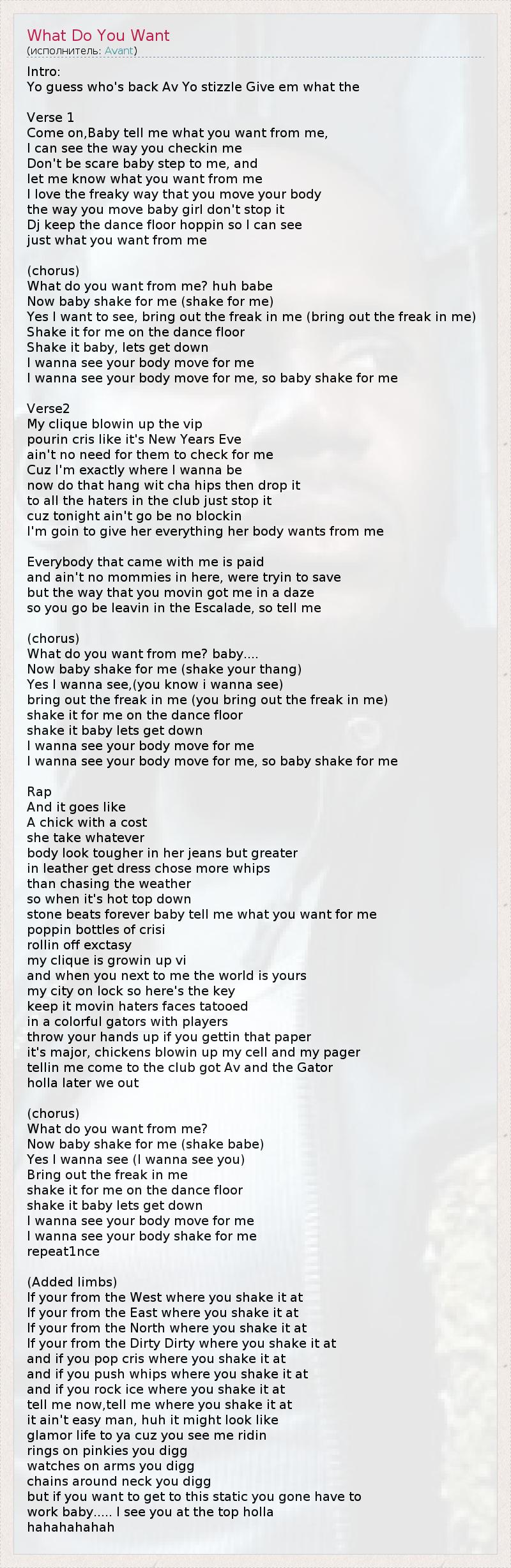 Come on,Baby tell me what you want from me,