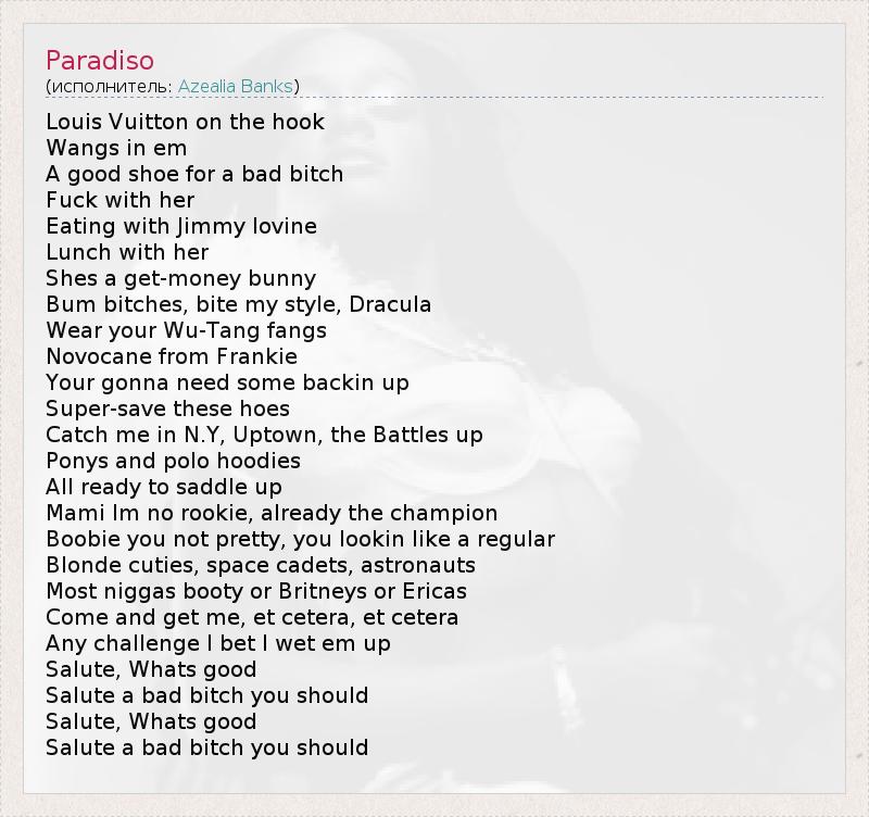 Это интересно:Азилия Бэнкс (родилась 31 мая 1991 года в Гарлеме, Нью-Йорк) — американская певица, рэпер и автор песен из Гарлема (Нью-Йорк). Бэнкс прославилась в 2011 году, когда возглавила «Список крутых» в журнале New Musical Express. В декабре того же года она была объявлена среди номинантов опроса BBC Sound of 2012, где в итоге заняла третье место. Её дебютный сингл «212 (feat. Lazy Jay)», записанный... продолжение