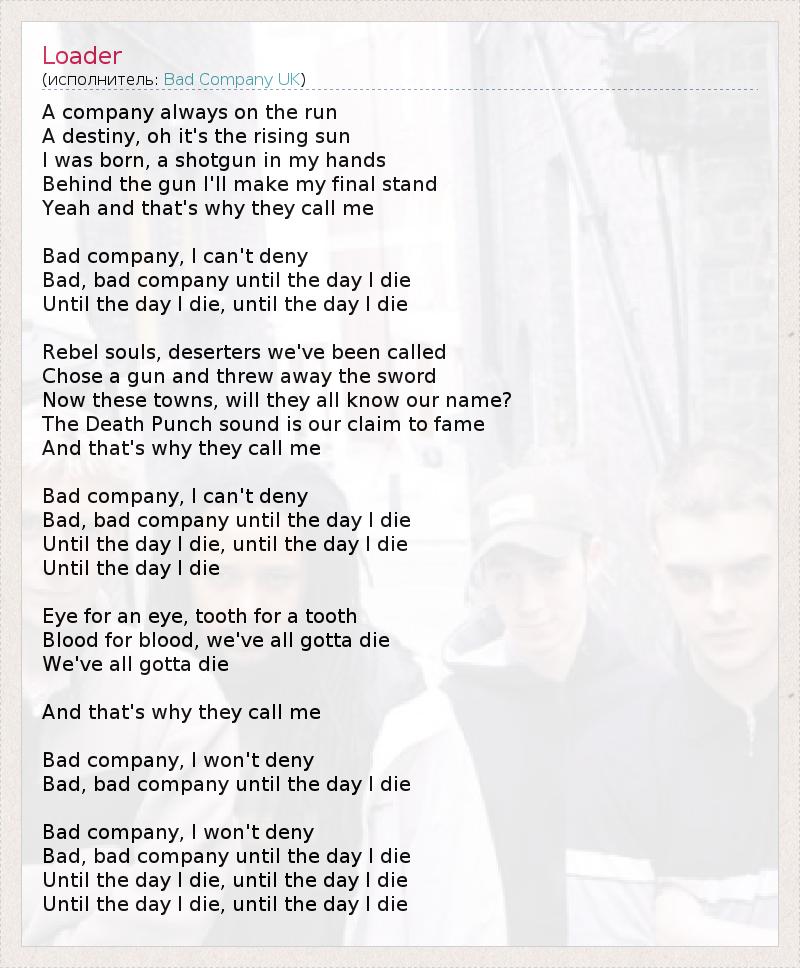 Это интересно:История Bad Company берёт начало во второй половине 1990-х — именно тогда четырёх музыкантов свёл вместе один из старейших dnb-лейблов Renegade Hardware. До объединения Мальдини и Уайт уже работали вместе под общим псевдонимом Absolute Zero, Штейн и Вожики также некоторое время работали в дуэте. Однако, лишь объединение в квартет раскрыло истинный творческий потенциал музыкантов и сделало их одними из классиков... продолжение