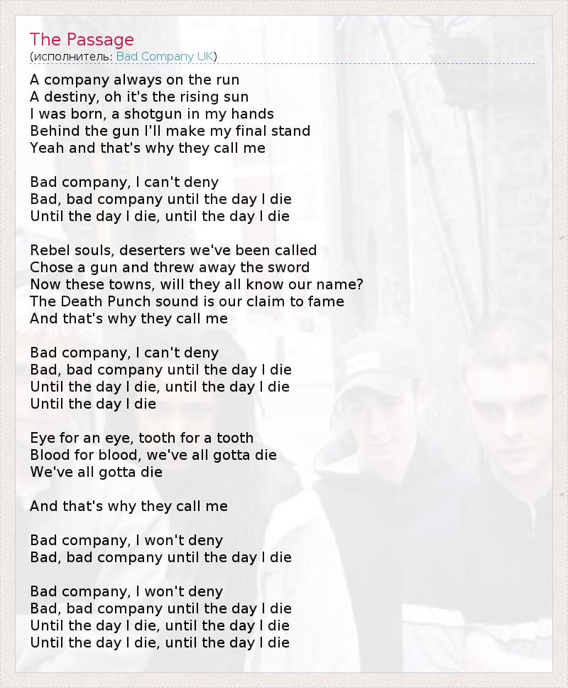 Это интересно:История Bad Company берёт начало во второй половине 1990-х — именно тогда четырёх музыкантов свёл вместе один из старейших dnb-лейблов Renegade Hardware. До объединения Мальдини и Уайт уже работали вместе под общим псевдонимом Absolute Zero, Штейн и Вожики также некоторое время работали в дуэте. Однако, лишь объединение в квартет раскрыло истинный творческий потенциал музыкантов и сделало их одними из классиков... продолжение
