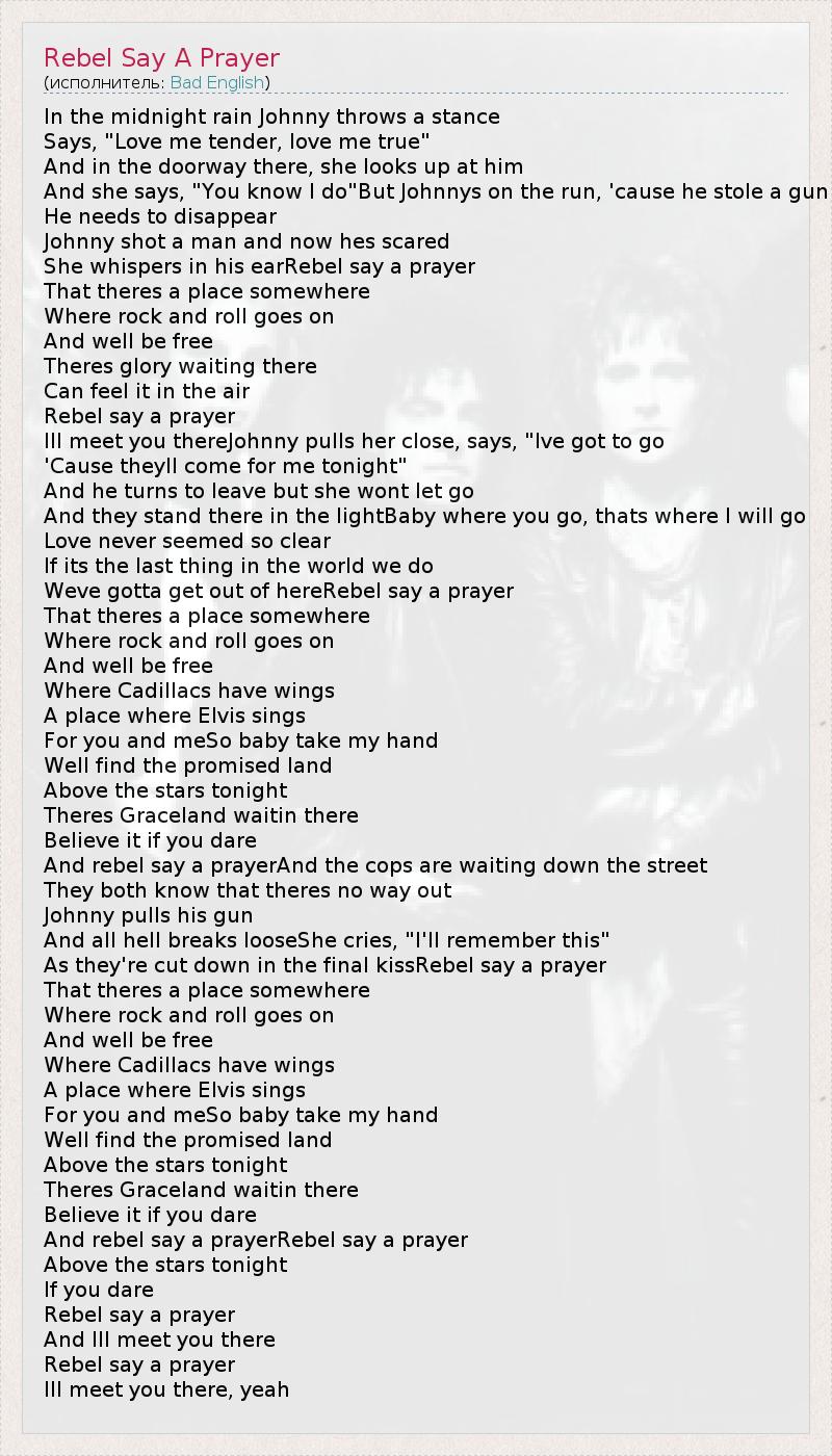 А как ты думаешь, о чем песня "Rebel Say A Prayer" ?