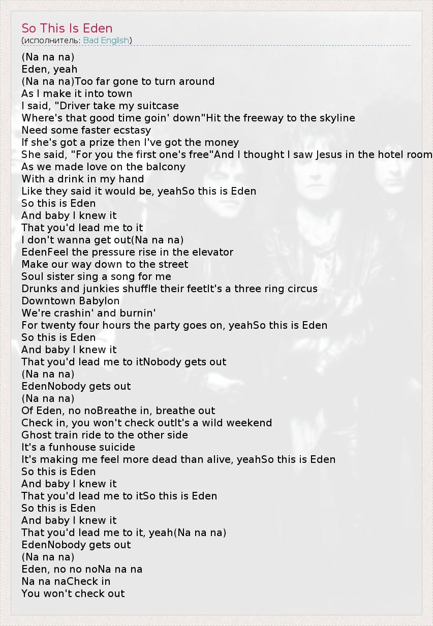 А как ты думаешь, о чем песня "So This Is Eden" ?