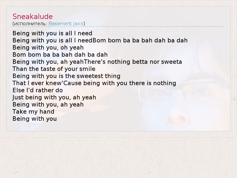 Being with you is all I needBom bom ba ba bah dah ba dah